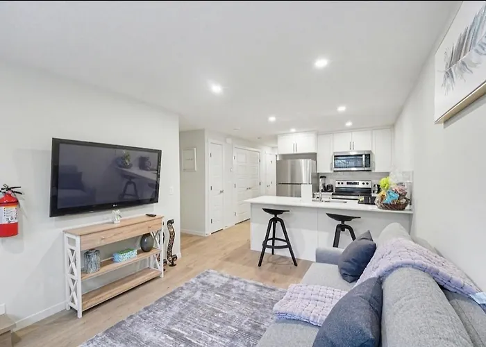 Luxury Brand New 1 Bedroom Townhome Calgary is located 3.4 km from Church of Jesus Christ of Latter-day Saints and approximately 10 minutes by car from Harvest Hills Golf Course. Guests can make use of Wi-Fi for both business and leisure purposes.